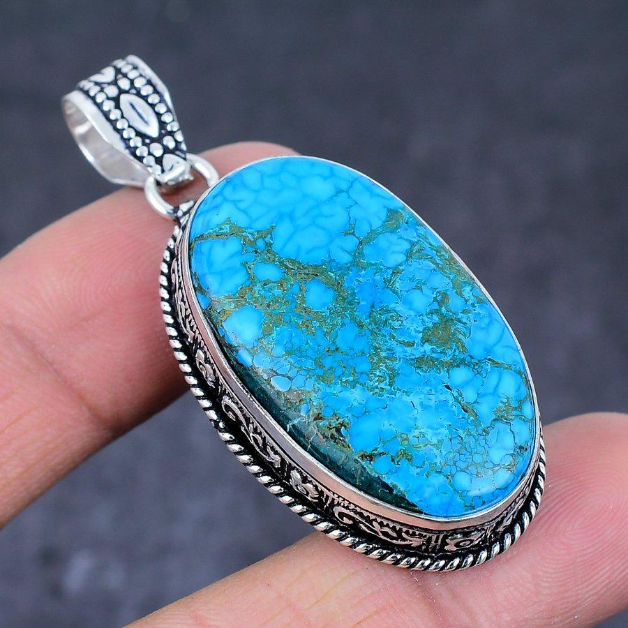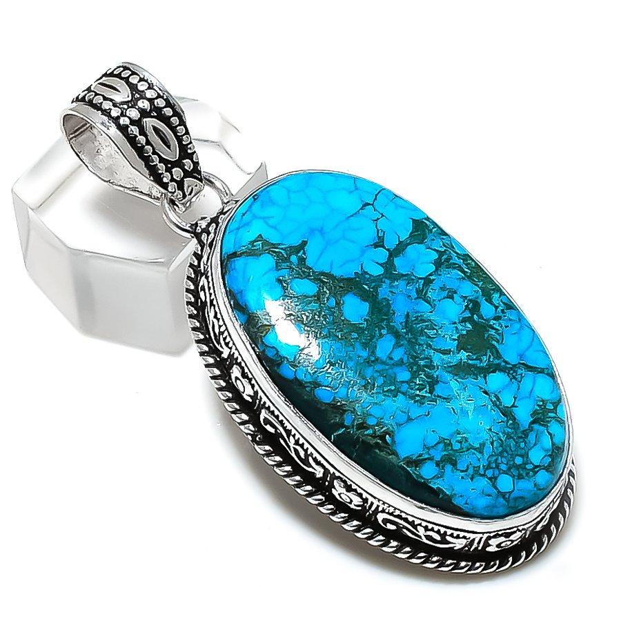 Подвеска ручной работы из стерлингового серебра 925 пробы с натуральной тибетской бирюзой 2,21 дюйма