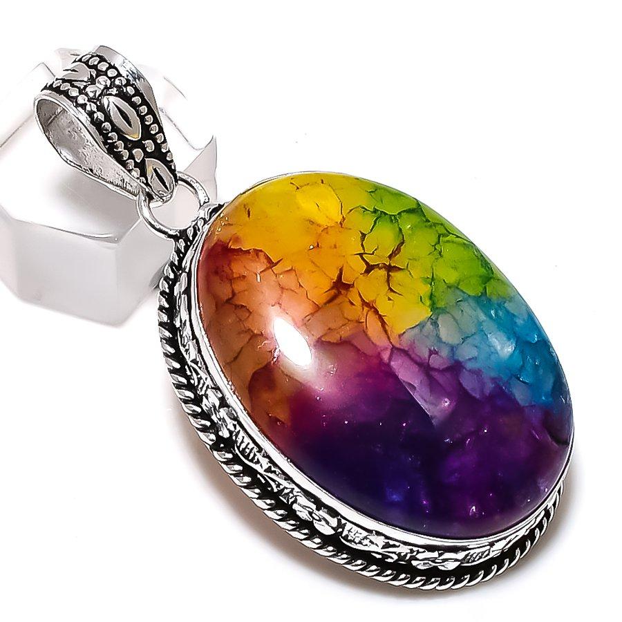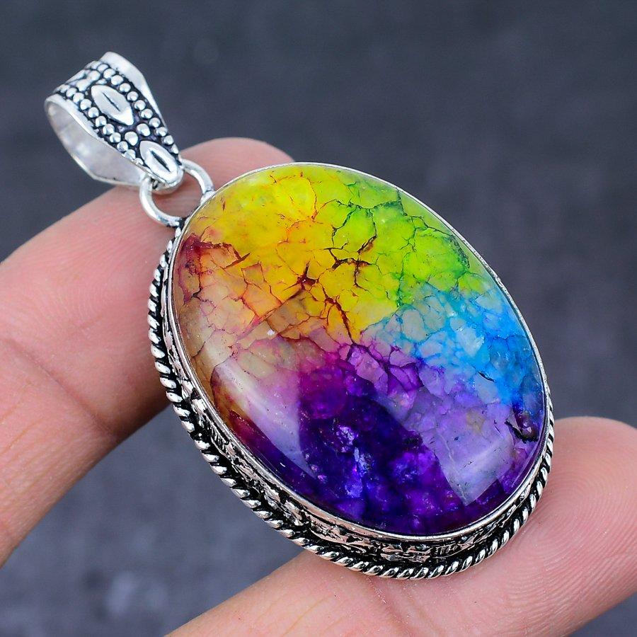 Подвеска из натурального радужного солнечного кварца ручной работы из стерлингового серебра 925 пробы 2,21 дюйма