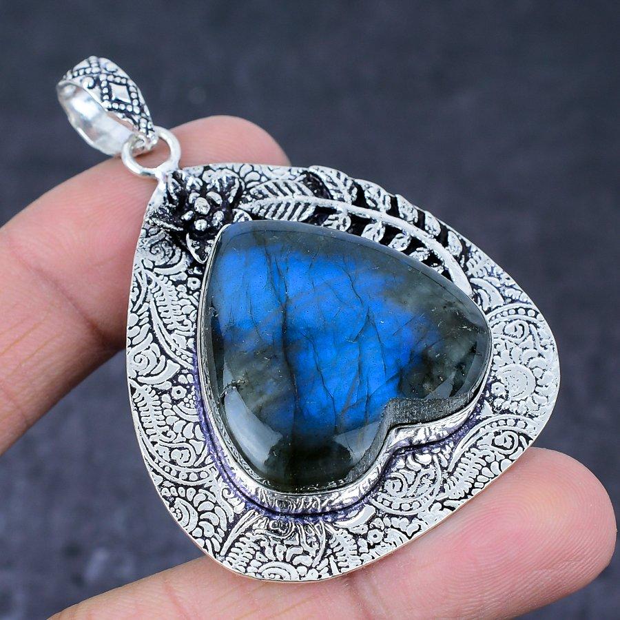 Подвеска ручной работы из стерлингового серебра 925 пробы с натуральным лабрадоритом 2,56 дюйма