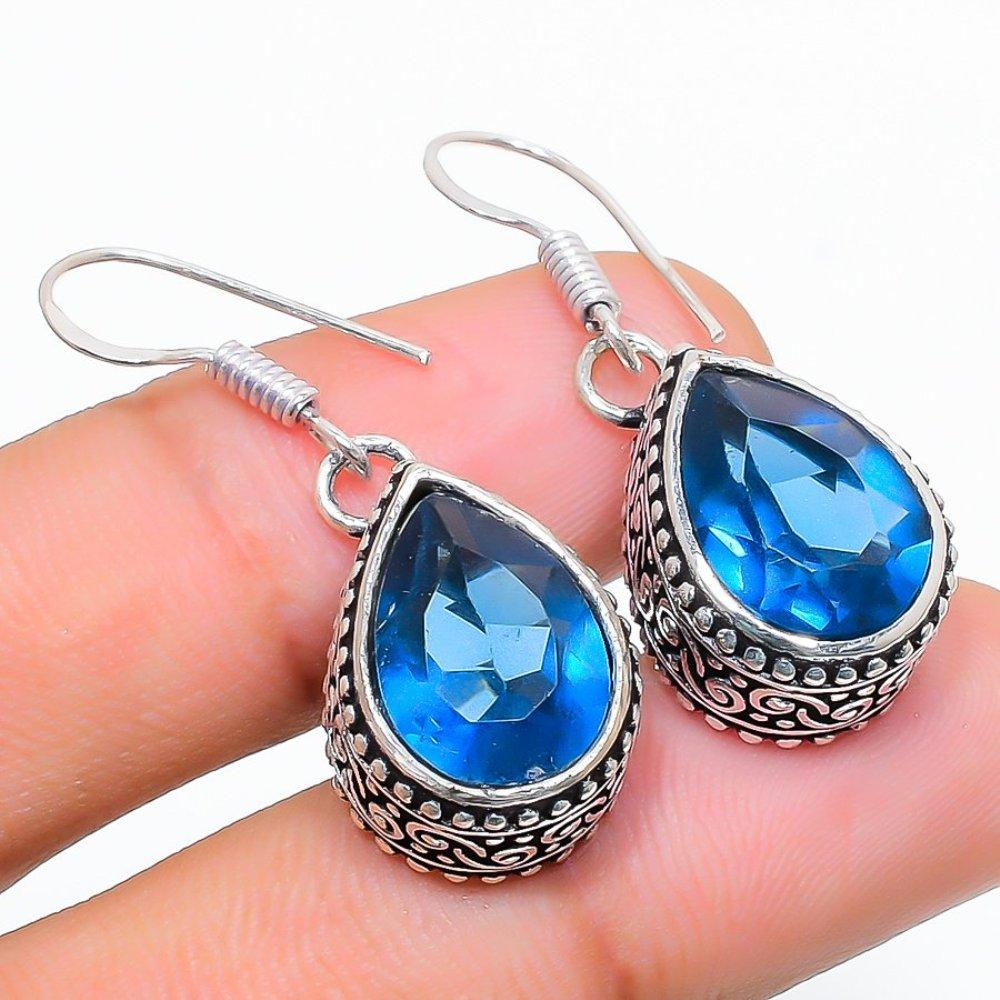 Серьги ручной работы из стерлингового серебра 925 пробы с натуральным синим топазом 1,42 дюйма m4Z39