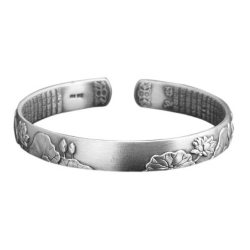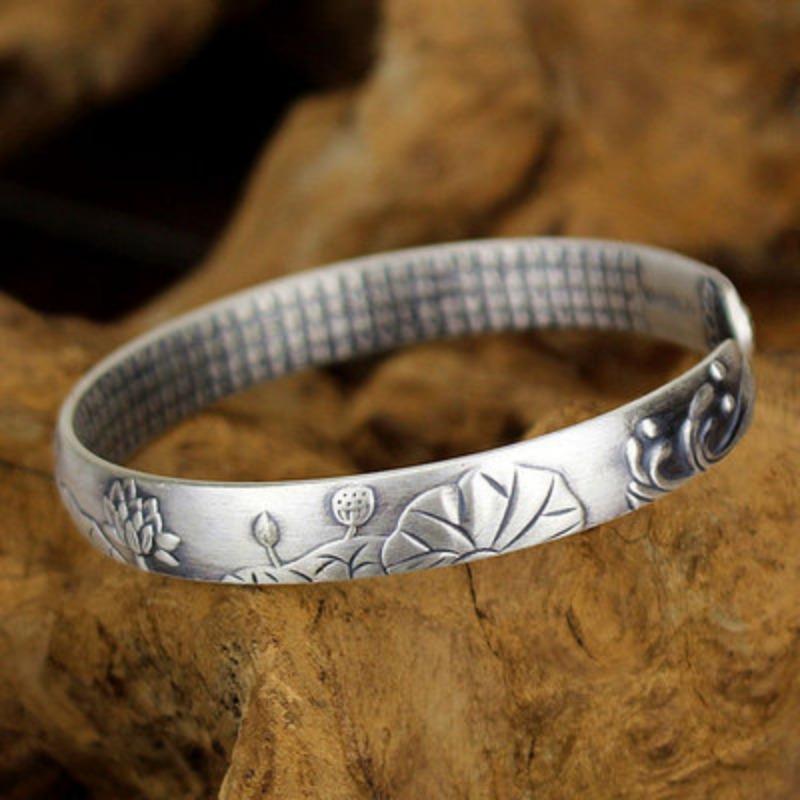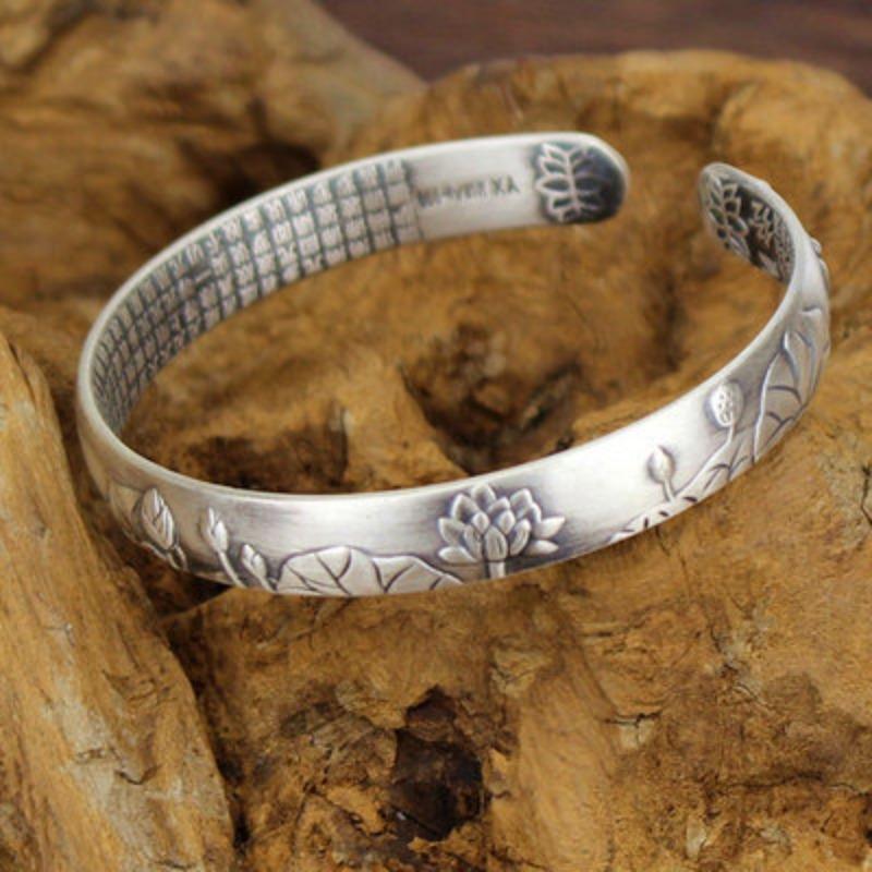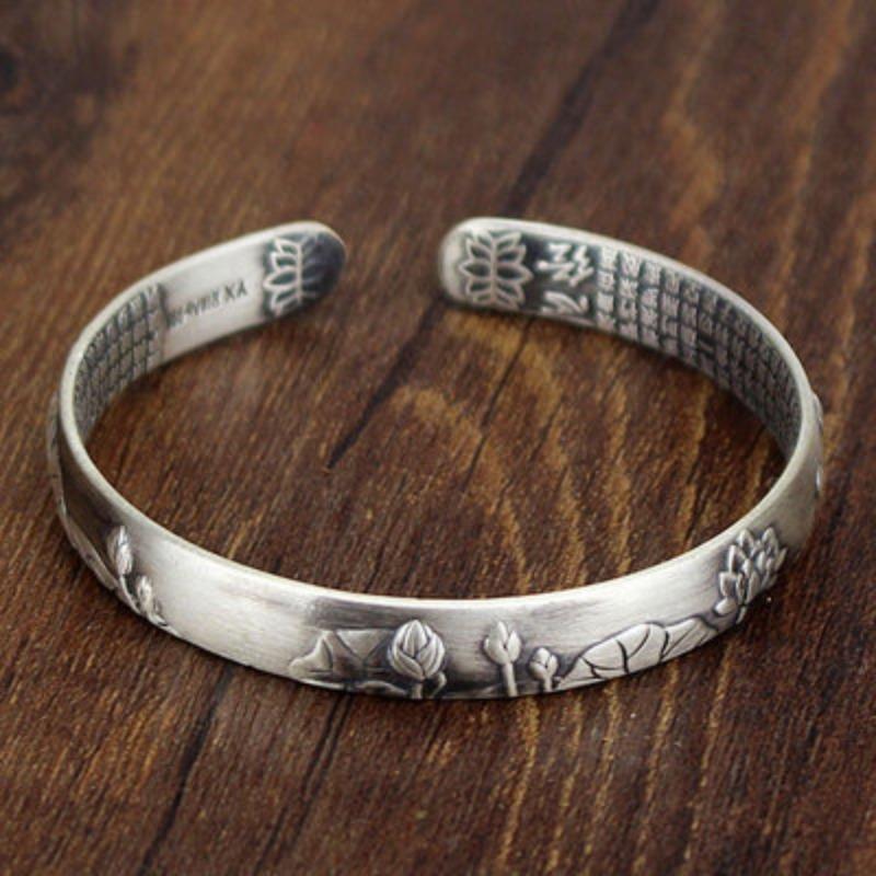 Ретро S999 Серебряный браслет с изображением лотоса и Будды, ручной серебряный браслет, женский подарок в виде лотоса, серебряный браслет для матери, ювелирные изделия, подарок на день матери