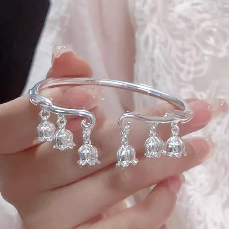 Серебряный браслет 9999 года с колокольчиком и орхидеей. Твердый открытый браслет. Браслет в молодом китайском стиле для подруги на День святого Валентина. — купить товар онлайн с бесплатной доставкой по всему миру!