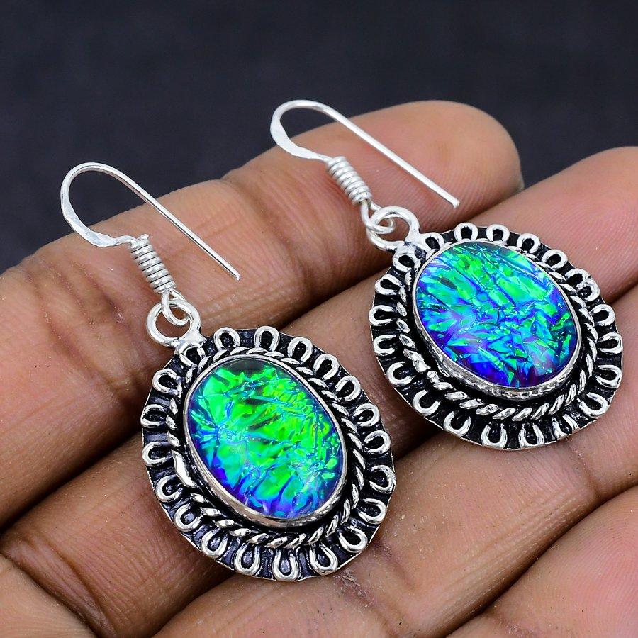 Серьги из стерлингового серебра 925 пробы с натуральным фиолетовым тройным опалом, размер 1,73 дюйма, D1f25
