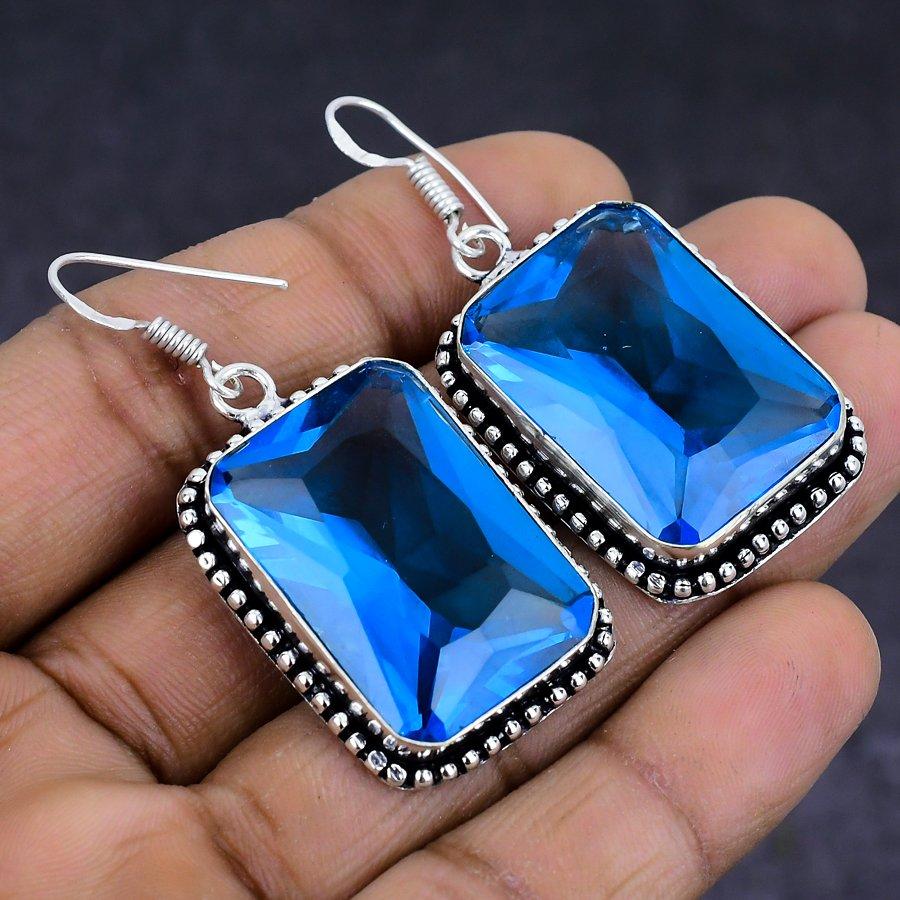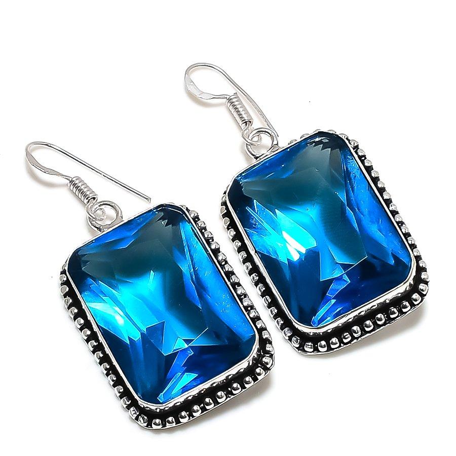 Серьги из стерлингового серебра 925 пробы с натуральным швейцарским голубым топазом, 1,97 дюйма, w4z91