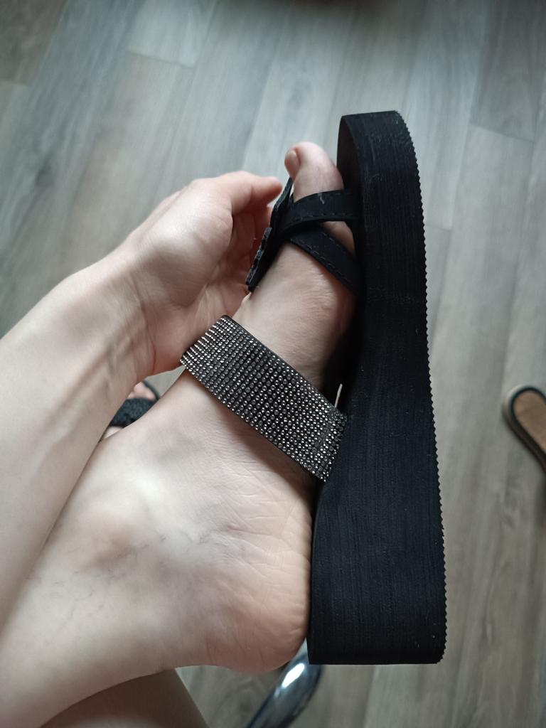 Месяц до Москвы. Обувь красивая, блестящая, удобная. Час проходила в них дома. Ноги не натëрли, стопы не болят, очень комфортно. На стопу 25 см размер 40 немного маловат, пятка чуть свисает. Это не критично, т.к. обувь открытая. С нетерпением жду лета, чтобы красоваться! К покупке рекомендую.