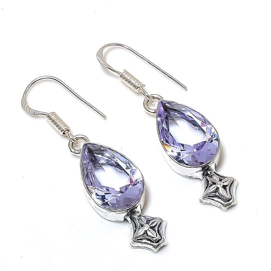 Подарочные серьги ручной работы из стерлингового серебра 925 пробы с натуральным аметистом 1,77 дюйма F3E65