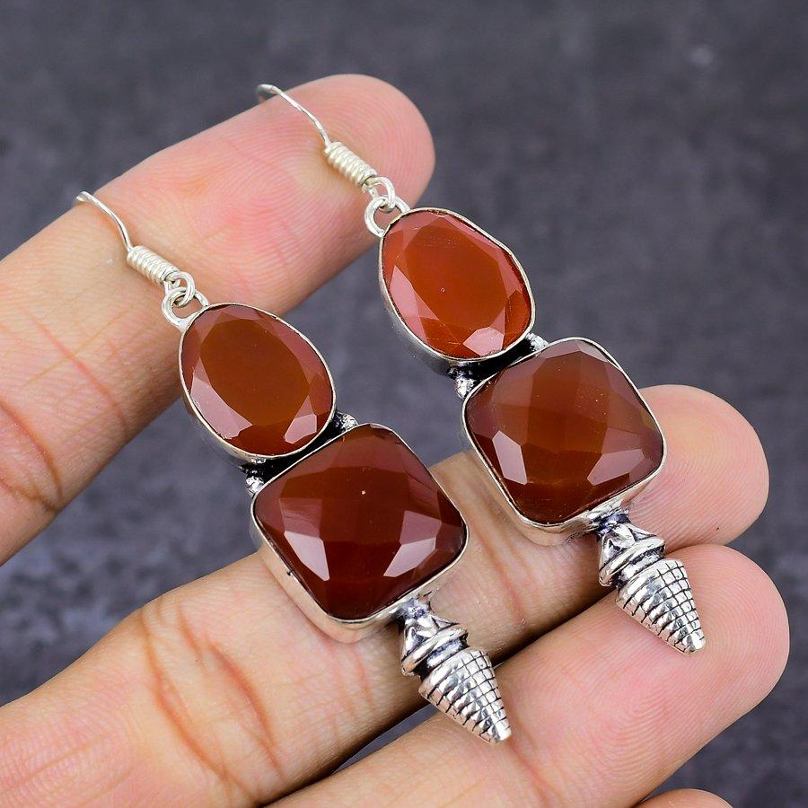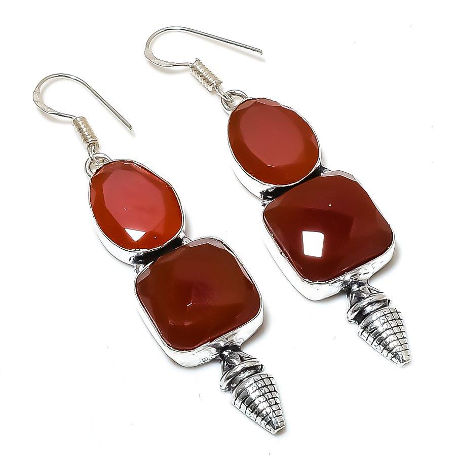 Серьги ручной работы из стерлингового серебра 925 пробы с натуральным красным сердоликом 2,68 дюйма r8W48