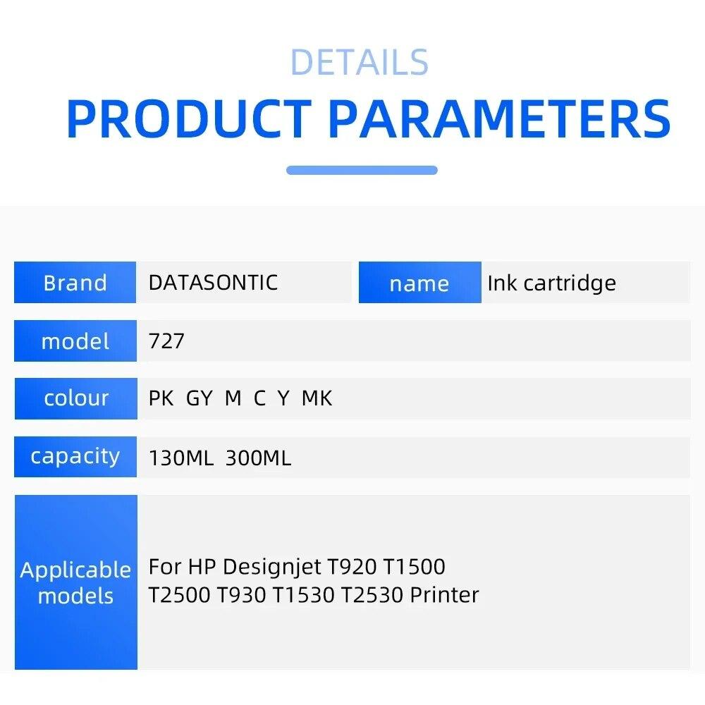 Картридж 727 для HP Designjet T920 T1500 T2500 T2530, совместимый с принтером hp727, цветной струйный картридж 130 мл, 300 мл
