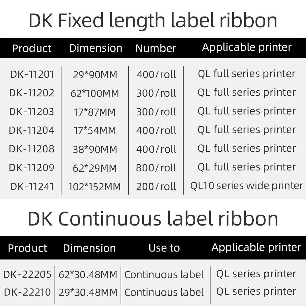 DK-11209/8/4/3/2/1 DK-22210 DK22205 Термобумага для этикеток DK-11241 для Brother QL1060N QL1050 QL1050N Принтер этикеток Самоклеящаяся