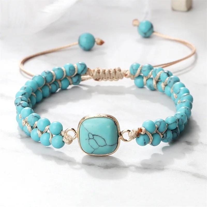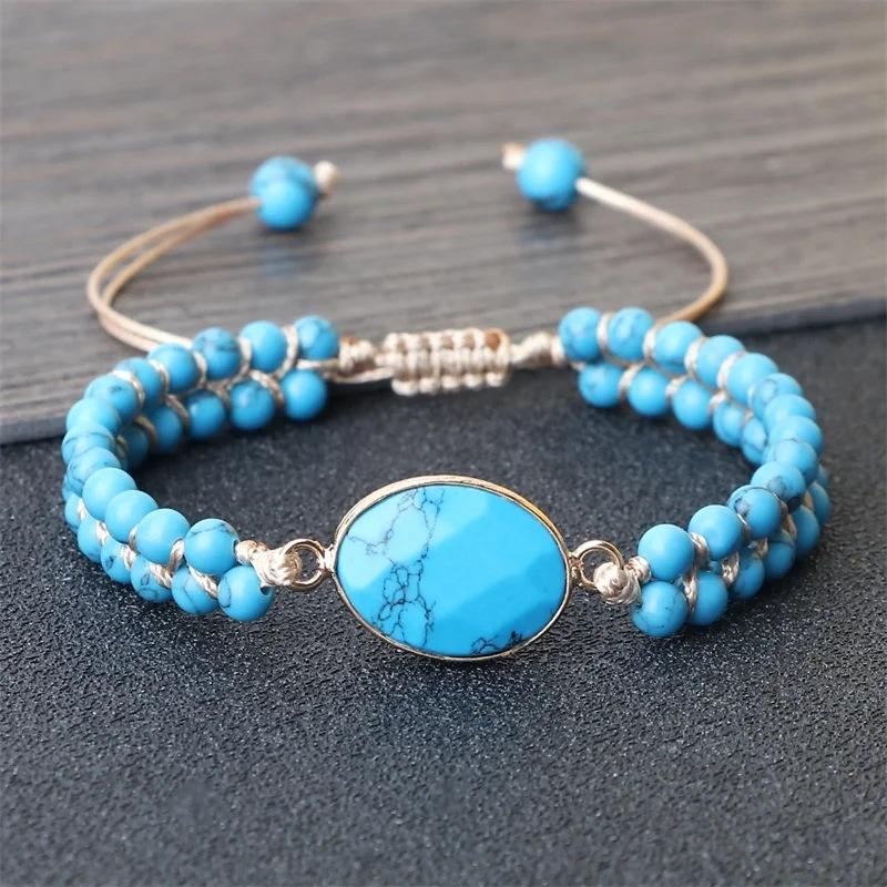BLINGBAY женский браслет синий бирюзовый натуральный камень браслет ручной работы регулируемый браслет для пар ювелирные изделия в этническом стиле подарок для девочек