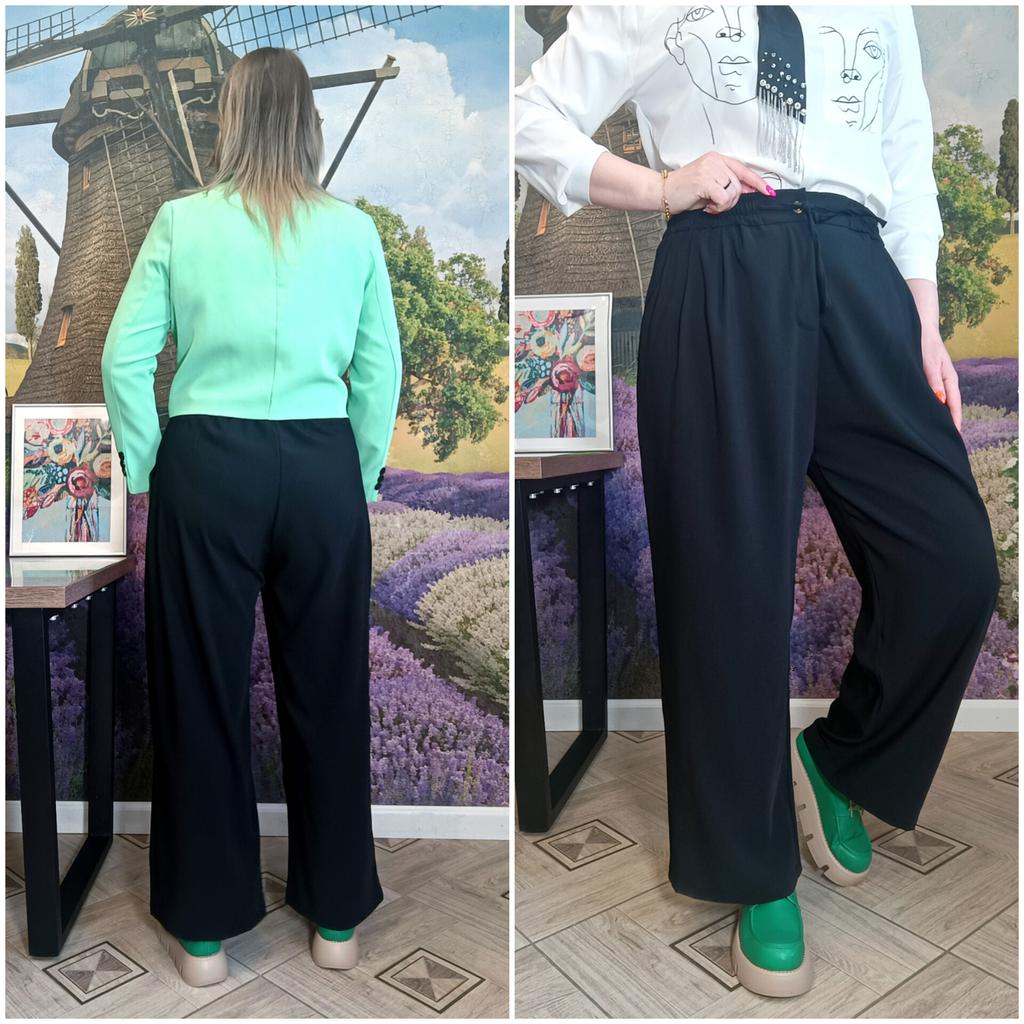 🖤ЧЁРНЫЕ КЛАССИЧЕСКИЕ ДАМСКИЕ БРЮКИ ОТ БРЕНДА CANVAUS🖤 Классика всегда актуальна на все времена! И такие брюки тому подтверждение. Их модель можно назвать базовой, универсальной и составлять с ней много различных образов: от деловых до романтичных. Брюки прекрасного фабричного качества. Претензий к пошиву нет. Сшиты они из плотной, тяжёлой костюмной ткани, которая отлично держит свою форму и садится по фигуре. Ткань крепкая и добротная. Ей сносу не будет! Хорошо гладится утюгом, не электризуется и умеренно мнётся. Брюки имеют прямой силуэт и высокую посадку. Штанины у них средней ширины. В поясе имеется широкая двойная резинка, сквозь которую продет шнурок в виде завязок. Из под резинки заложены складки. Есть глубокие боковые внутренние карманы. Застёгиваются брюки на пластмассовую молнию и пуговицу. Петлю для пуговицы следует прорезать самостоятельно. Сезон для носки брюк: круглогодичный, но расчитаны они не на слишком жаркое лето, так как ткань у брюк всё таки плотная и толстенькая. На свои параметры ОТ 95 и ОБ 125 при росте 170 см я выбрала размер 5 XL и он мне хорошо подошёл. Могу рекомендовать покупку этих брюк, всем тем, кому нравится классика. МЕРКИ БРЮК В РАЗМЕРЕ 5XL: ОТ - в спокойном состоянии 80 см. При растяжении резинки может увеличиться до 108 см. ОБ - 150 см. ДЛИНА БРЮК - 105 см. ШИРИНА ШТАНИН - 31 см.