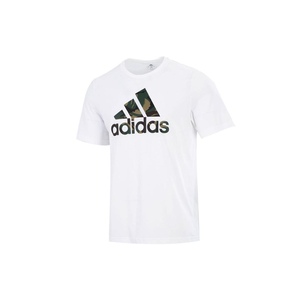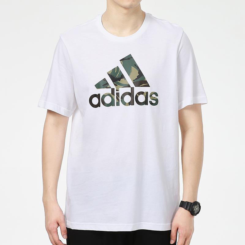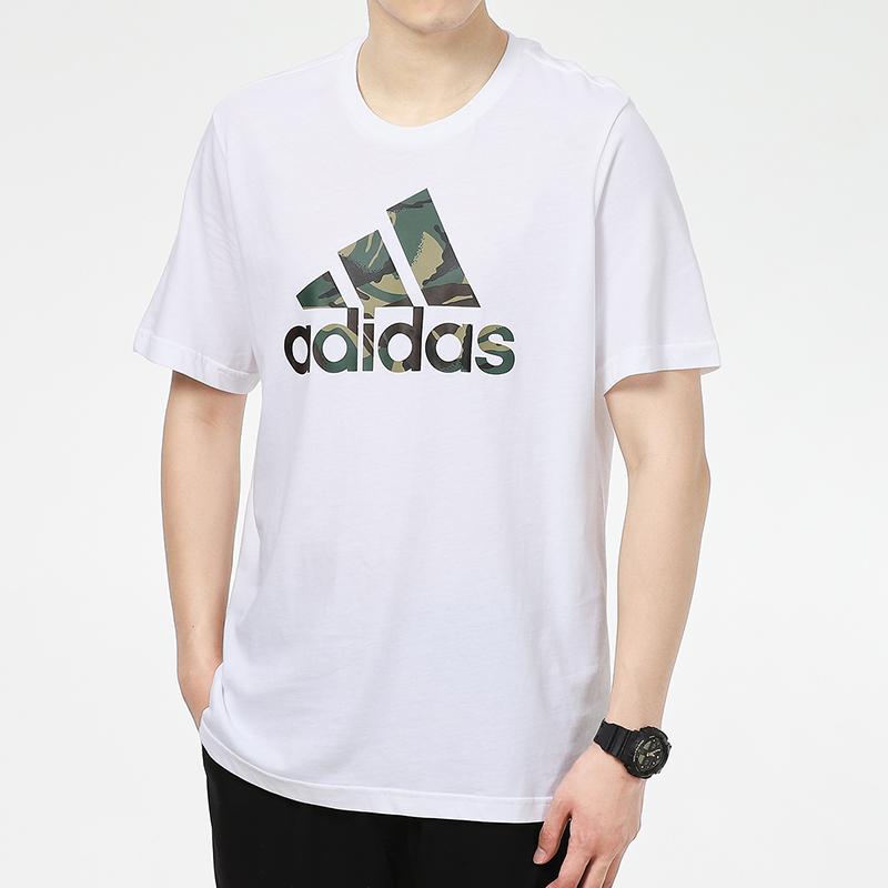 Adidas Камуфляжный принт с логотипом, спортивная футболка с короткими рукавами, мужские топы, белый GV5237