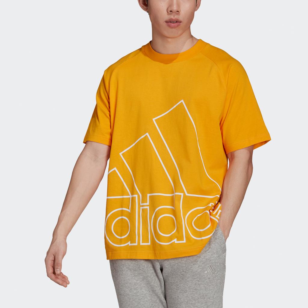 Adidas Спортивная футболка с круглым вырезом и коротким рукавом с большим логотипом, топы унисекс, оранжевый H60665