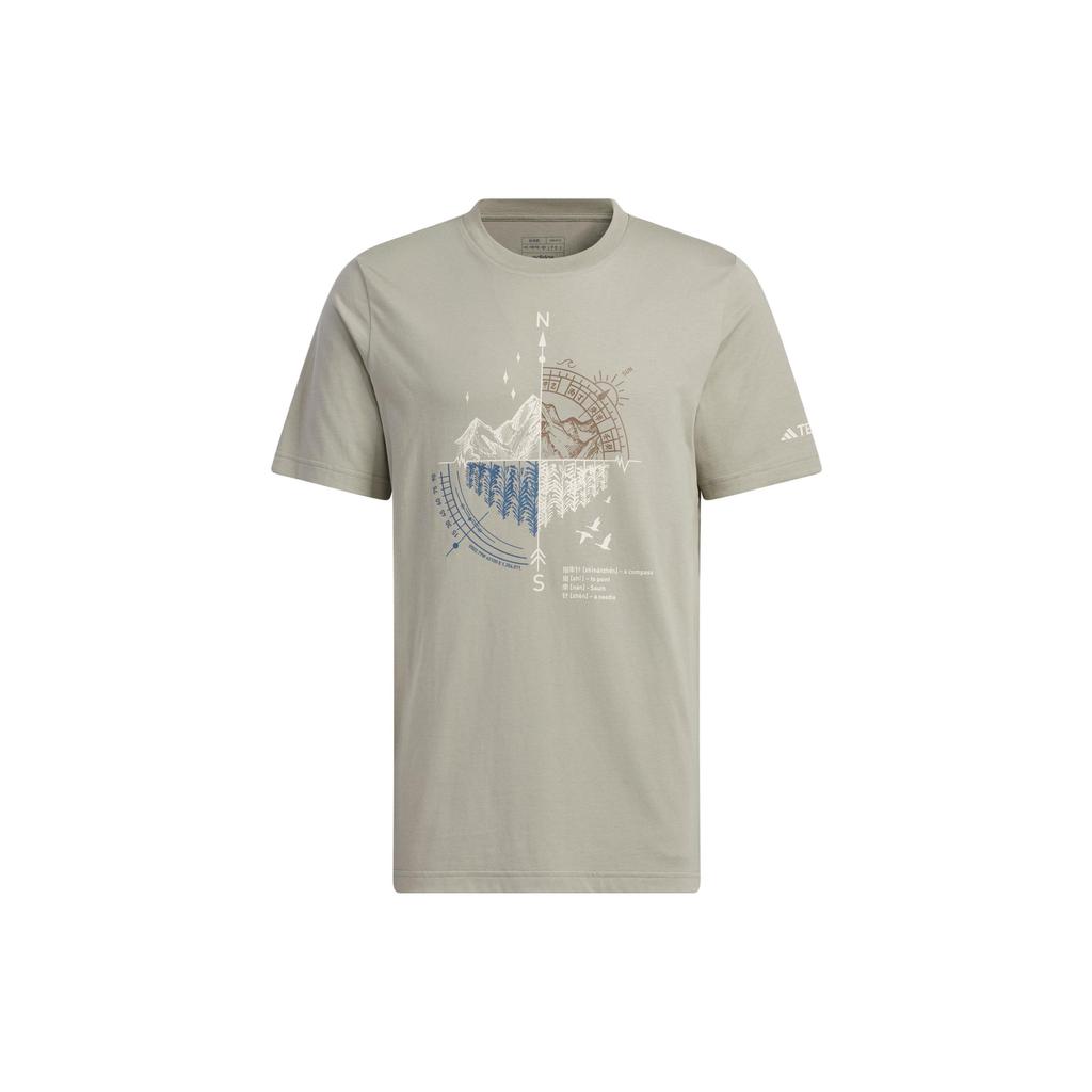 Adidas Футболка с коротким рукавом и принтом в виде горного рисунка для занятий спортом на открытом воздухе, мужская, цвет Pebble Silver-Grey IT8847