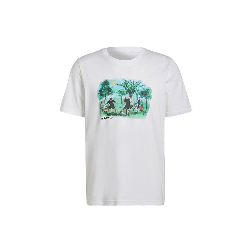Adidas Оригинальная футболка с короткими рукавами и мультяшным баскетбольным принтом трилистника, мужские топы, белые HE4717