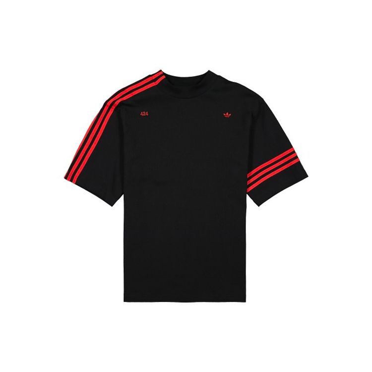 Adidas Оригиналы Трилистник x 424 RYV. Свободная футболка с коротким рукавом с ребристым воротником, мужские топы, черные FS6236