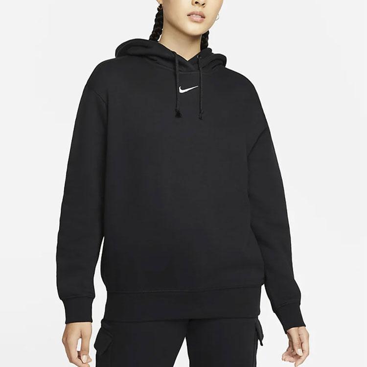 Nike Спортивный повседневный пуловер с флисовой толстовкой с капюшоном для женщин, черный DJ7669-010