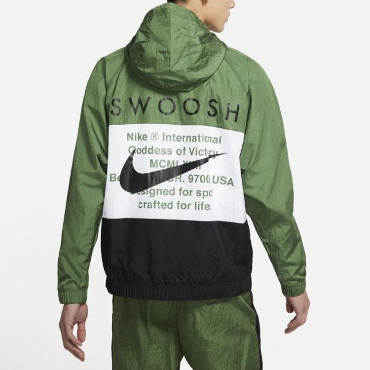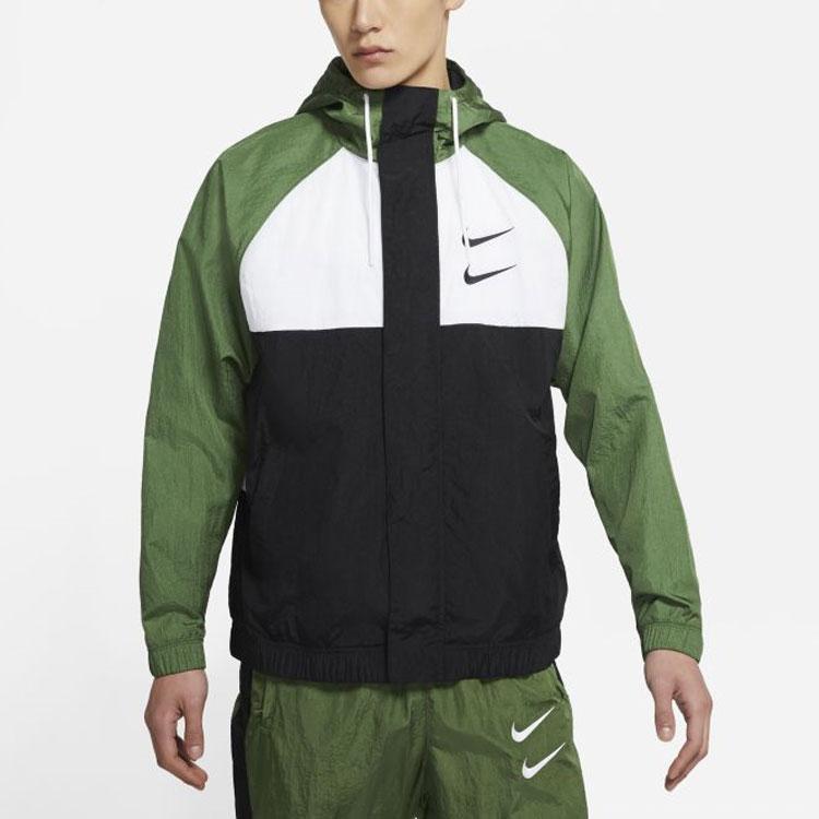 Nike Ветрозащитная спортивная тканая куртка Swoosh с двойным крючком, мужская куртка, зеленая DJ9647-010