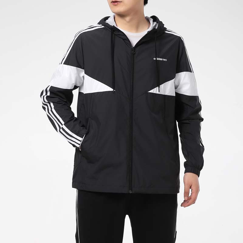 Adidas Тканая ветровка с цветными блоками, мужская верхняя одежда с капюшоном, черная GP5709