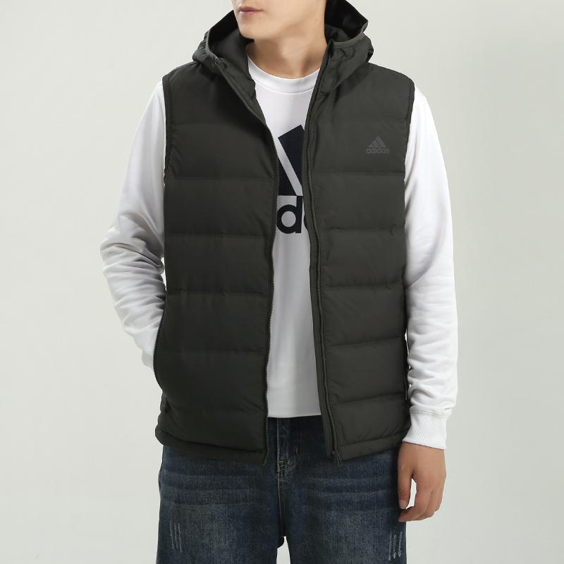Adidas Гелионный пуховик с капюшоном, зимние мужские жилеты, темно-земляно-коричневый GD4729