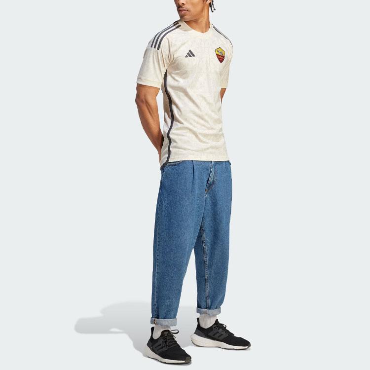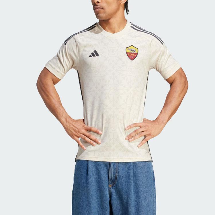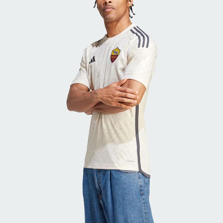 Adidas Выездная майка AS Roma 23/24, трехполосный принт, футбольная рубашка с коротким рукавом, мужская, светло-бежевая IK7168