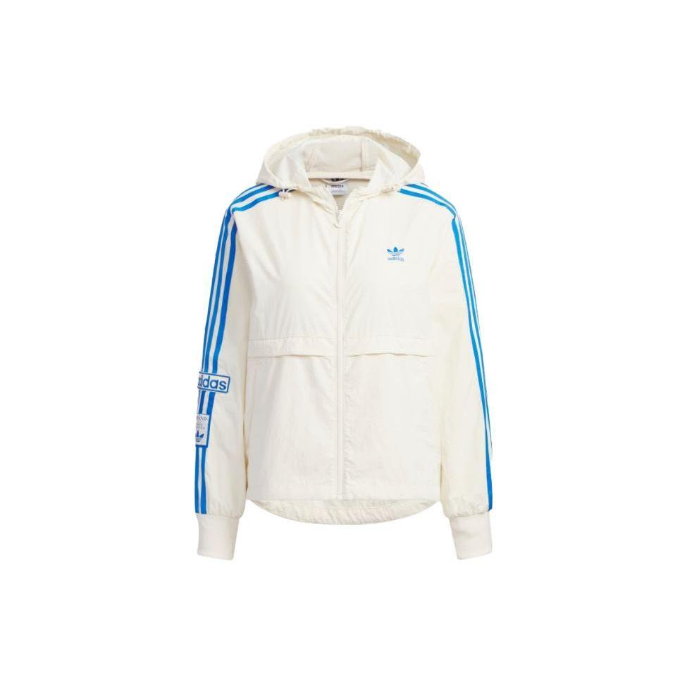 Adidas Оригинальная куртка с капюшоном в полоску и вышитым логотипом трилистника, женская верхняя одежда белого цвета IL6499