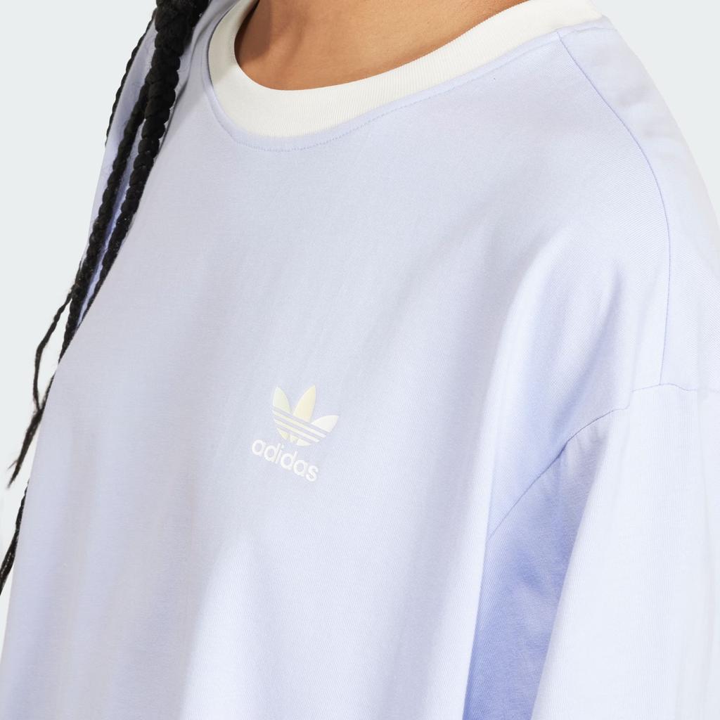 Adidas Футболка Originals с графическим принтом и буквенным логотипом, свободный крой, женские топы с короткими рукавами, светло-фиолетовый IT9820