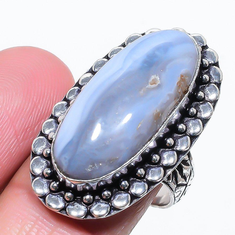 Подарочное кольцо из стерлингового серебра 925 пробы с натуральным синим кружевным агатом, размер 9,5 g7A92