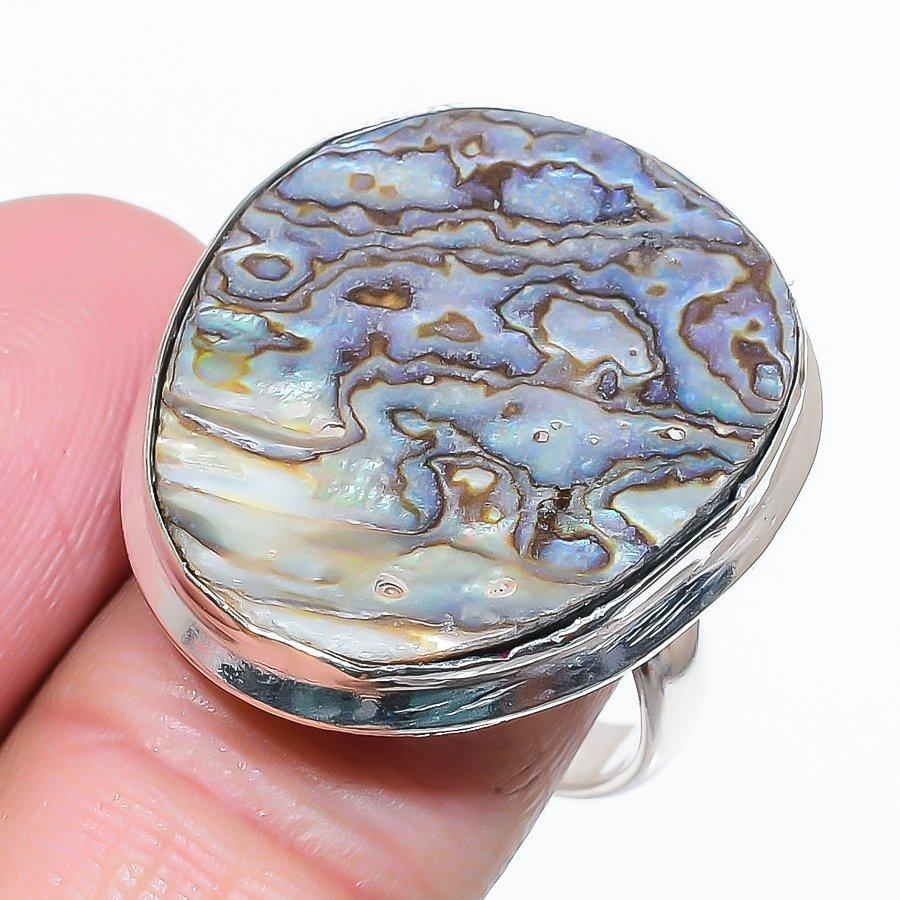 Натуральный драгоценный камень в виде раковины морского ушка из стерлингового серебра 925 пробы, размер 8,5, B8G68