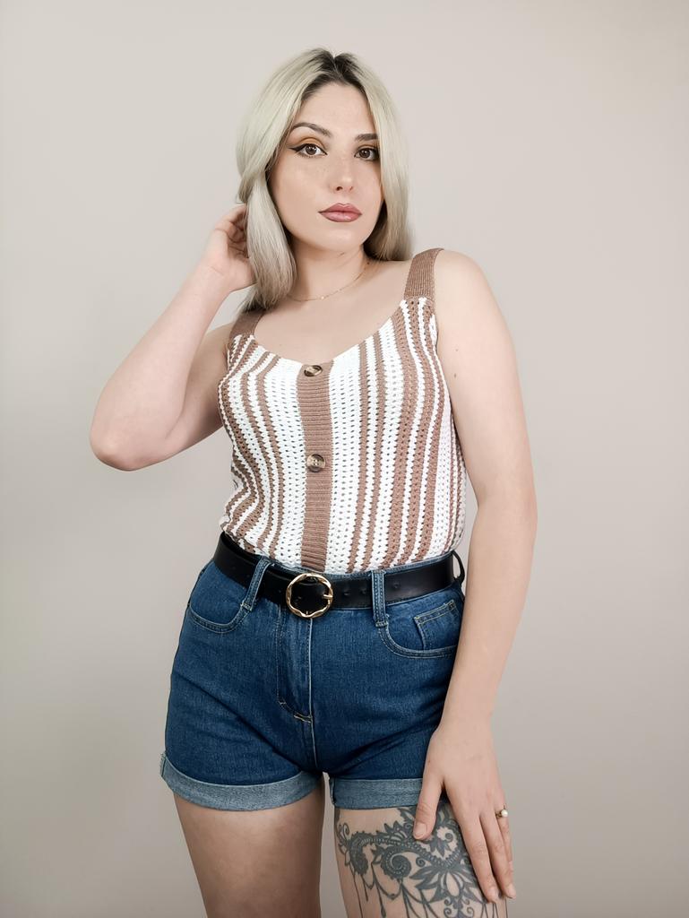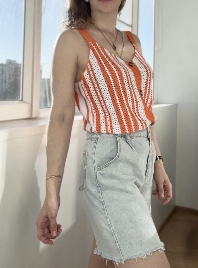 Ещё один вязаный топ. Просто и со вкусом. Отлично сочетается с джинсами или шортами. 🔸Представлен в нескольких расцветках, в размерах: S-XL. На мне самый маленький. - Замеры топа: Длина - 60 см ОГ - 80-120 см - Мои параметры: ОГ - 86 см ОТ - 67 см 🔸Вязка средней плотности. В составе 100% вискоза. 🔸Топ в вертикальную полоску, что визуально вытягивает фигуру. Пуговки посередине для декора. 🔸Топик на лямках. 🔸Цена качеству полностью соответствует. Рекомендую 👍 Ставлю ⭐⭐⭐⭐⭐ Большое спасибо продавцу ❤️ и Joom ❤️