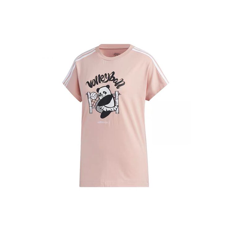 Adidas Свободная футболка с принтом Neo Panda, женские топы, розовые GK1562