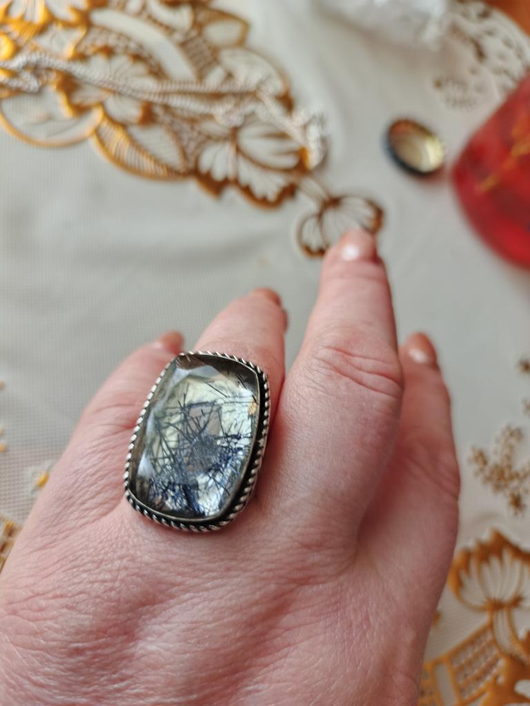 Кольцо из стерлингового серебра 925 пробы с натуральным черным рутилом ручной работы, размер 9 K6K04 — купить товар онлайн с бесплатной доставкой по всему миру!
