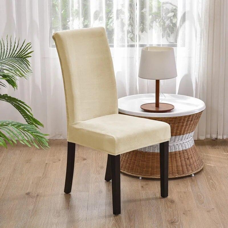Чехол на обеденный стул, мягкий теплый бархатный чехол из спандекса для кухонного сиденья, сплошной цвет, короткие плюшевые чехлы на стулья, защита для дома