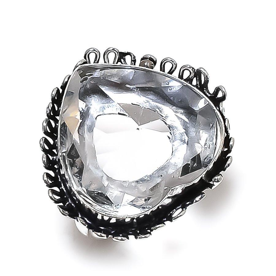 Кольцо из стерлингового серебра 925 пробы с натуральным белым топазом ручной работы, размер 7,5 K8E97