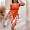 Весенне-летний новый комплект с поясом и принтом на бретельках, юбка до половины тела