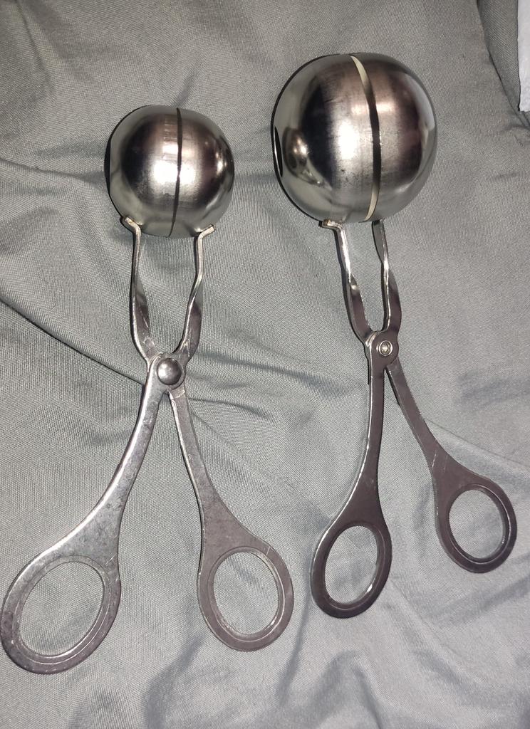 Пришли щипцы в общей посылке. На вид целые, как на фото. Испытала в деле : попробовала набирать фарш на фрикадельки ( фарш на крупную сетку перекручен и поэтому тянуться куски мяса , неудобно убирать лишнее), фарш после нескольких использований прилепает во внутрь щипцов и его извлечь кругляшками невозможно. НА фото в стеклянной форме видно какие получились экземпляры, что извлекли из щипцов. Решила попробовать помыть щипцы от фарша и каждый раз макать их в воду перед тем как набирать фарш . В этот раз фрикадельки извлеклись лучше ( фото кругляшков на досточке). Но выходит такой : все равно их надо дорабатывать вручную катая, чтоб получились ровные кругляши. Разве, что подойдут для того, чтоб одинаковый размер получился в итоге. Второй раз бы не купила.