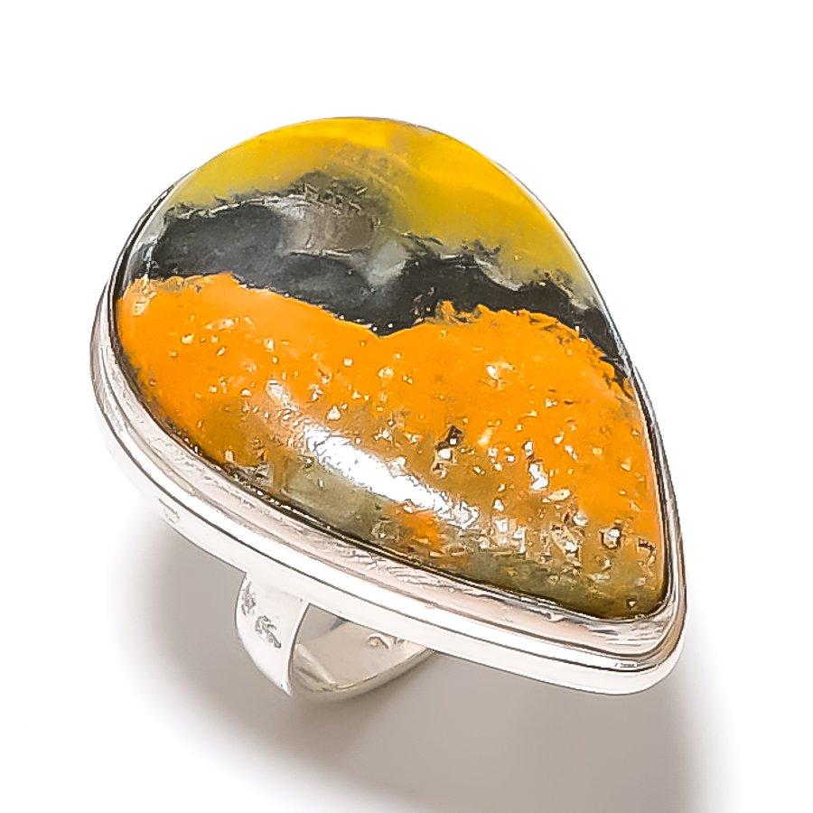 Кольцо из стерлингового серебра 925 пробы с натуральным драгоценным камнем шмельная яшма ручной работы, размер 6 R8B70