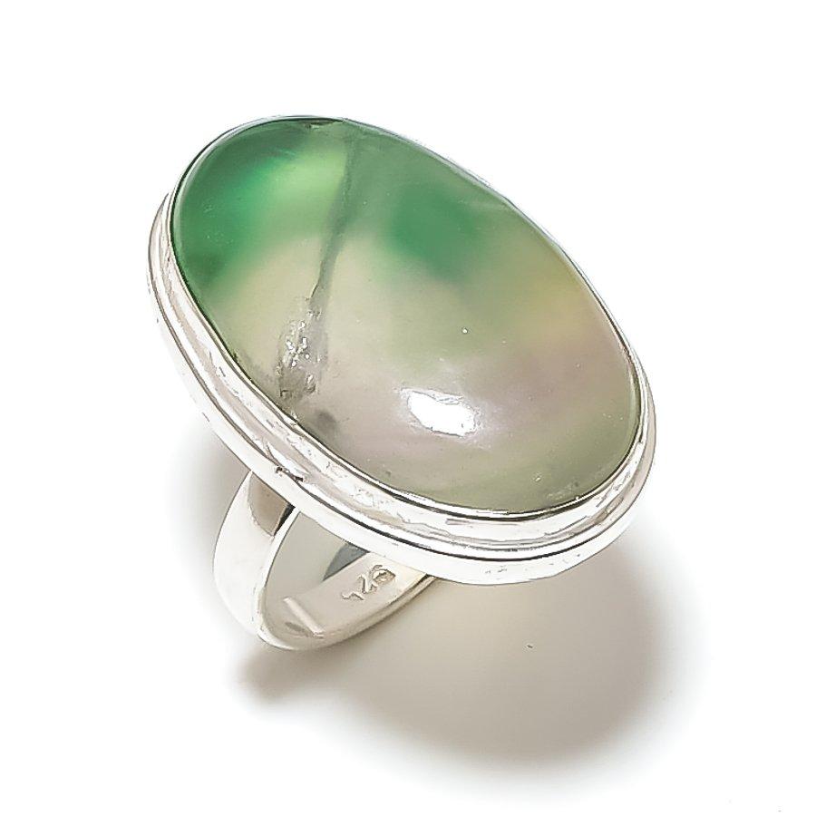 Кольцо из стерлингового серебра 925 пробы с натуральным зеленым флюоритом ручной работы, размер 8,5 z1A48