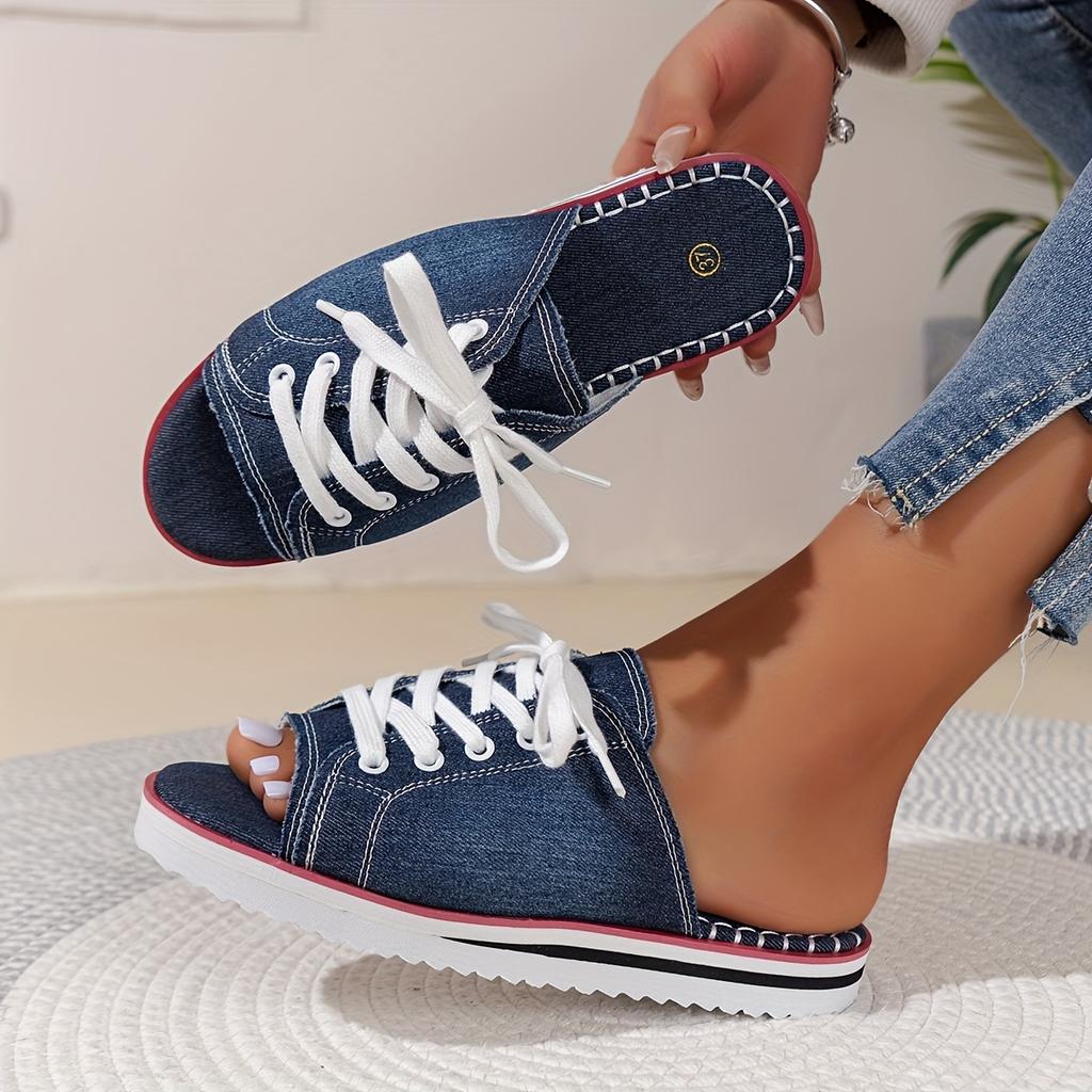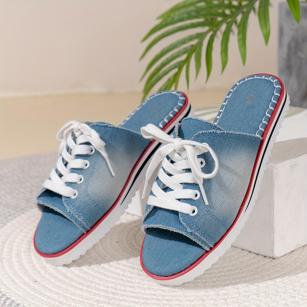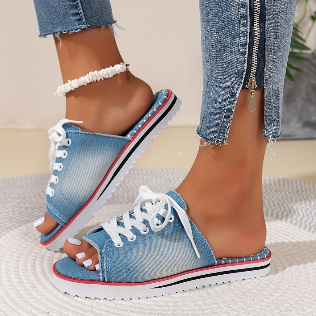 Женские джинсовые шлепанцы, повседневная летняя обувь с открытым носком, женские удобные шлепанцы на шнуровке