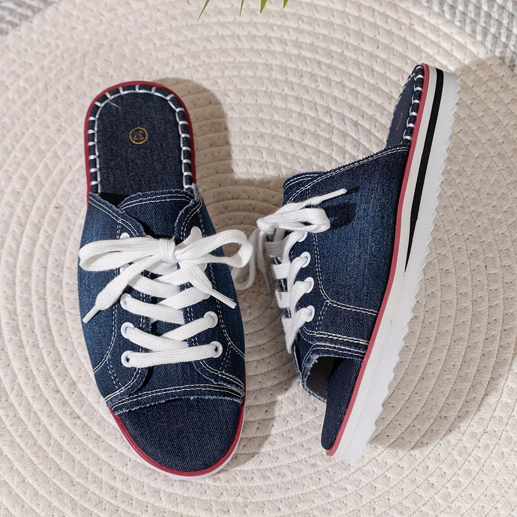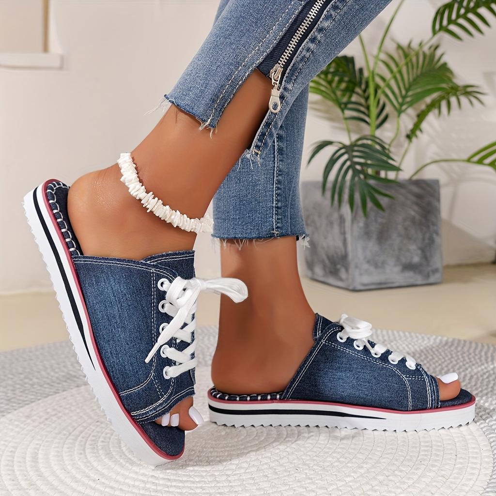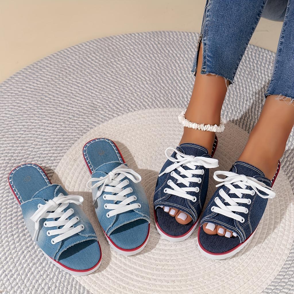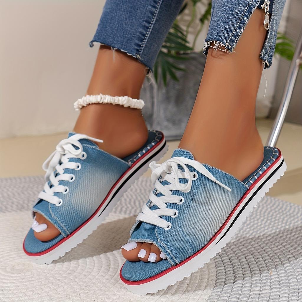 Женские джинсовые шлепанцы, повседневная летняя обувь с открытым носком, женские удобные шлепанцы на шнуровке