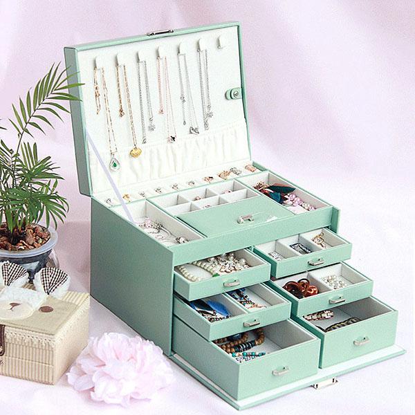 Женская многослойная шкатулка для драгоценностей, однотонная большая емкость, серьги и ожерелья, украшение, деревянная коробка для хранения — купить товар онлайн с бесплатной доставкой по всему миру!