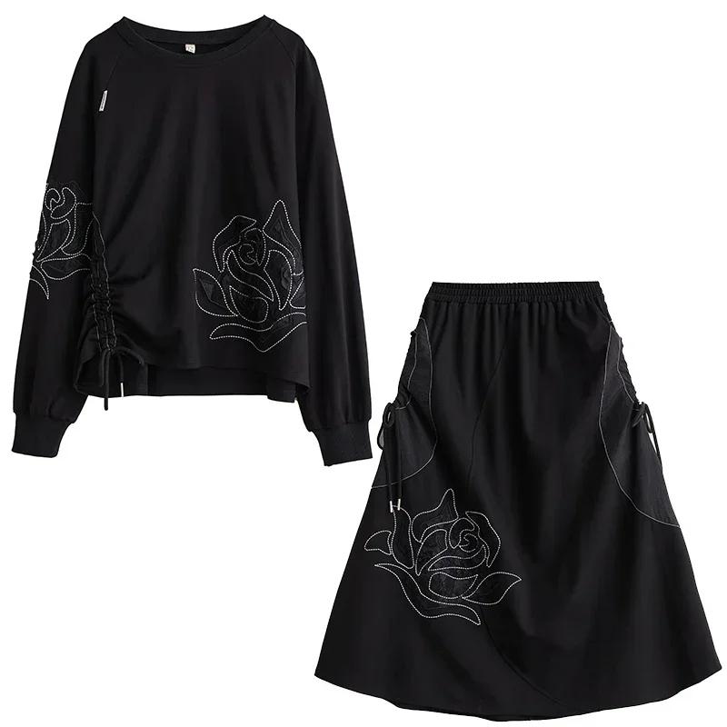 Xitao Свободные складки в стиле пэчворк, комплект из двух предметов, нерегулярная юбка, женский пуловер, топ HQQ1627