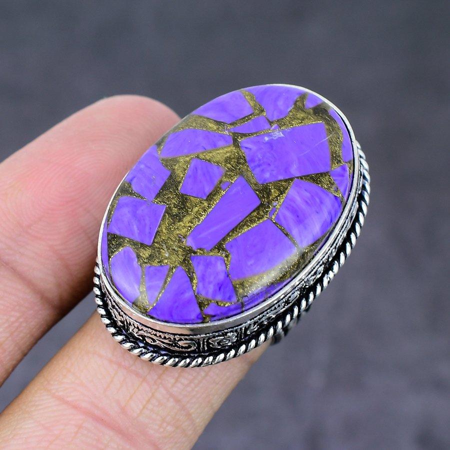 Кольцо из стерлингового серебра 925 пробы с натуральным медным камнем-чароитом ручной работы, размер 8,5 r5y38 — купить товар онлайн с бесплатной доставкой по всему миру!