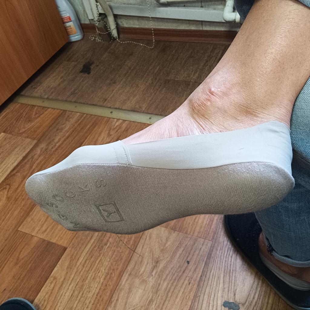 Носочки аккуратные, цвет как на картинке. На пятке силиконовые полоски. На мою стопу в 23,3 см чувствую большеваты. Натянули спокойно на 42 размер😁 Так что, девочки, у кого нет проблем с маленькими стопами, берите смело!