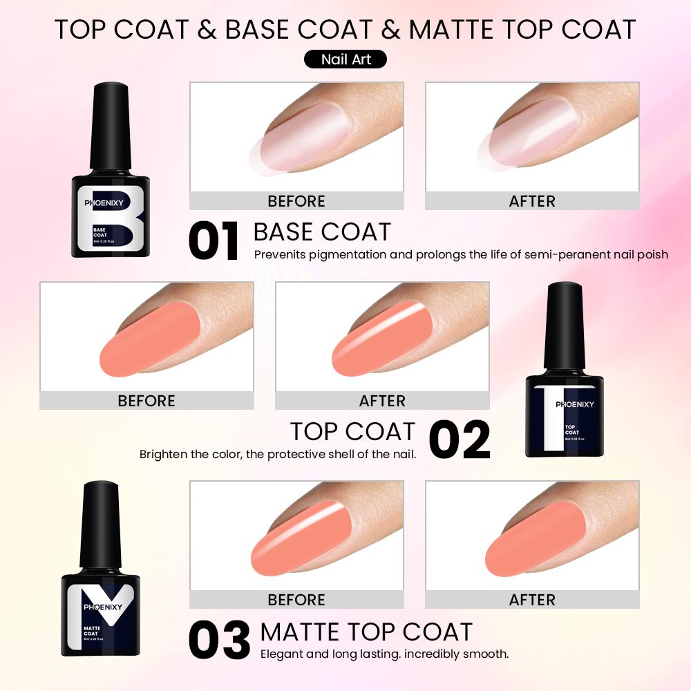 2.-Нанесите базовое покрытие PHOENIXCY (Не забудьте запечатать край ногтя).