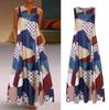Женское модное повседневное ретро-платье с принтом и v-образным вырезом без рукавов, карманное платье