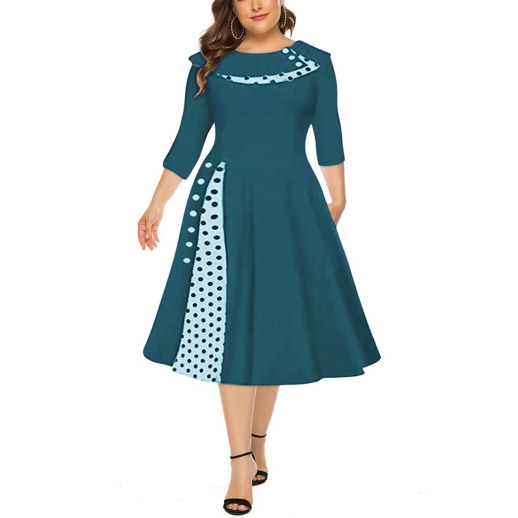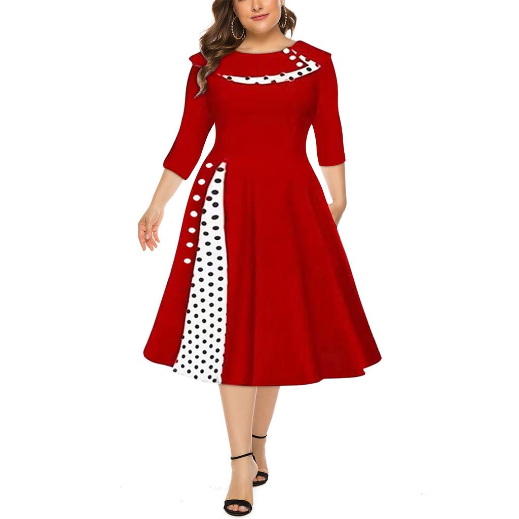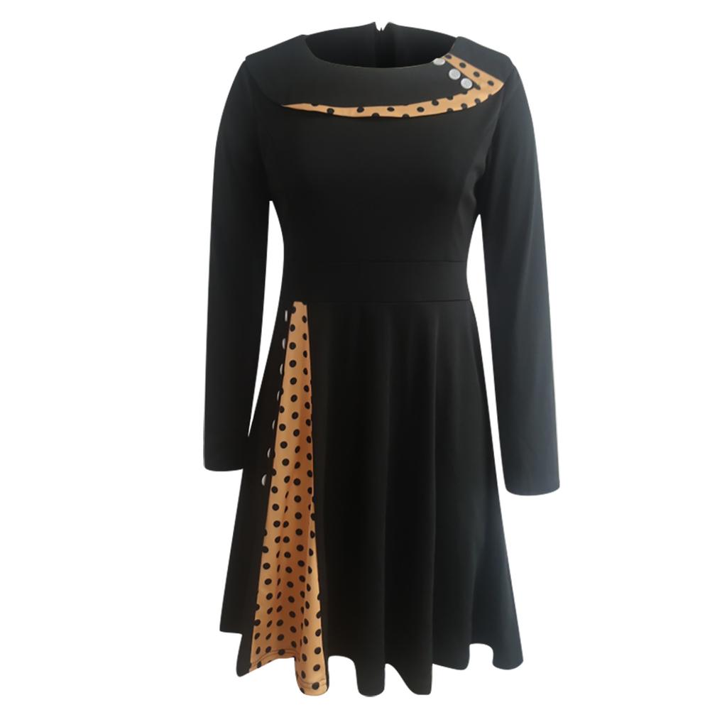 Женская мода в стиле ретро с длинным рукавом и круглым вырезом, сплошное цветное платье в горошек с талией