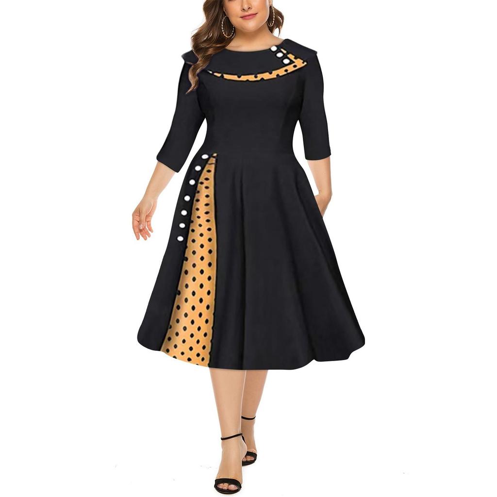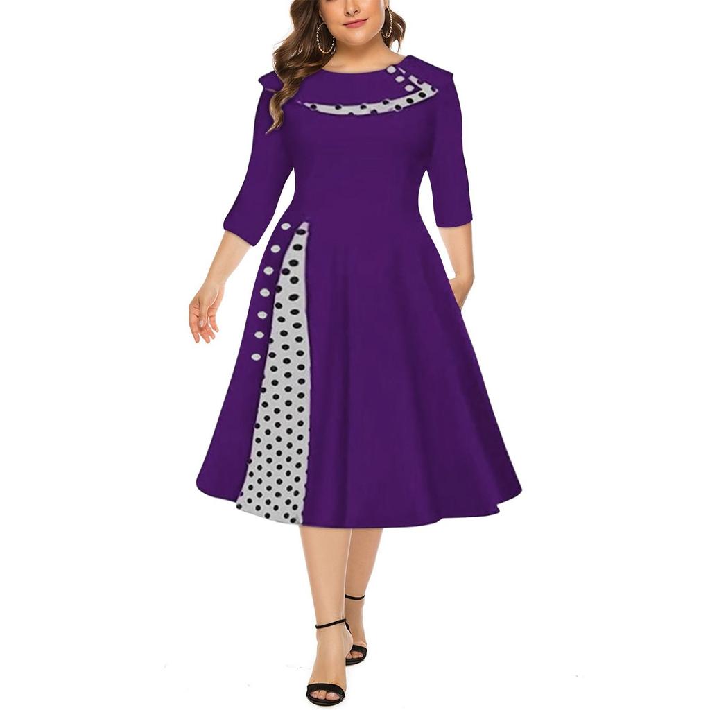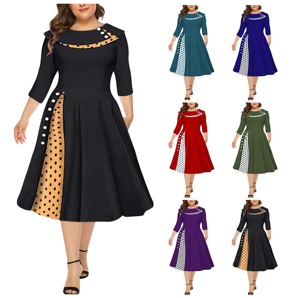 Женская мода в стиле ретро с длинным рукавом и круглым вырезом, сплошное цветное платье в горошек с талией