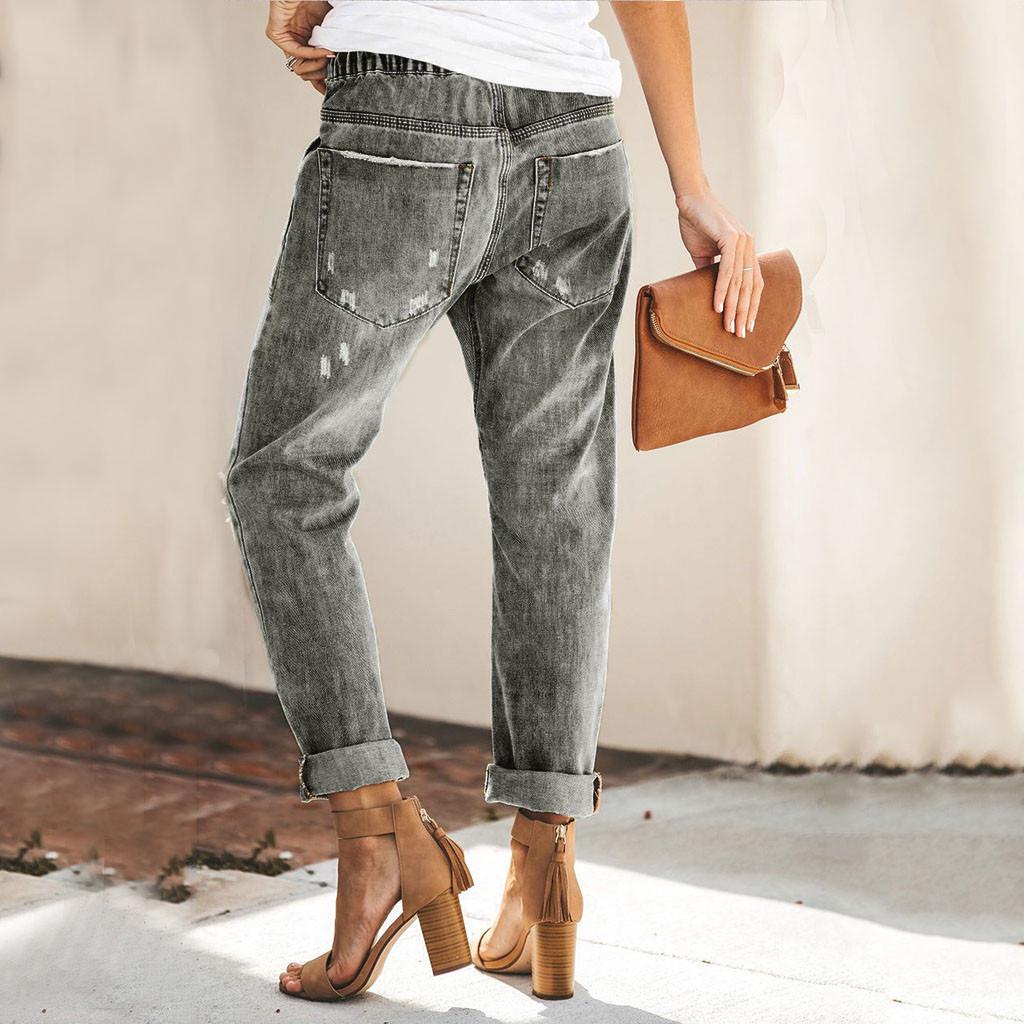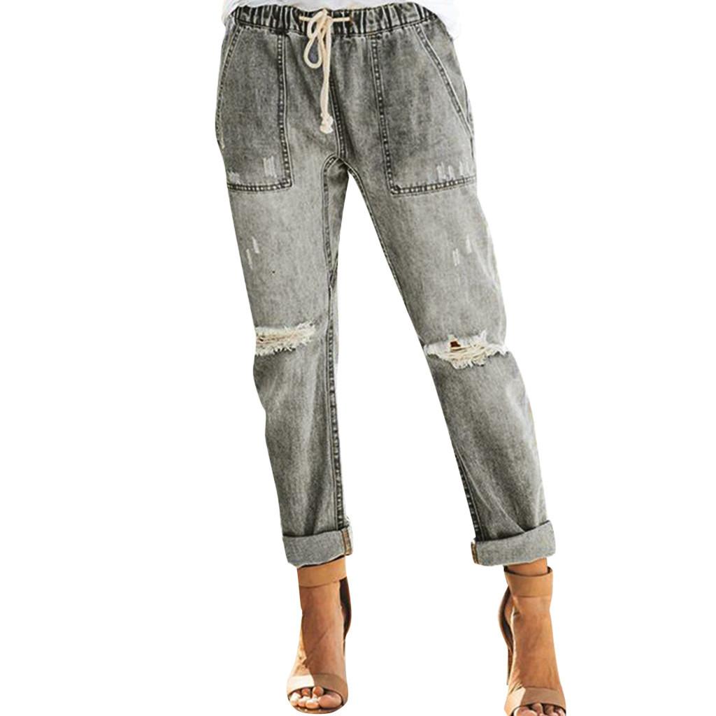 Женские джинсовые брюки-джоггеры с эластичной резинкой на талии и потертостями на талии