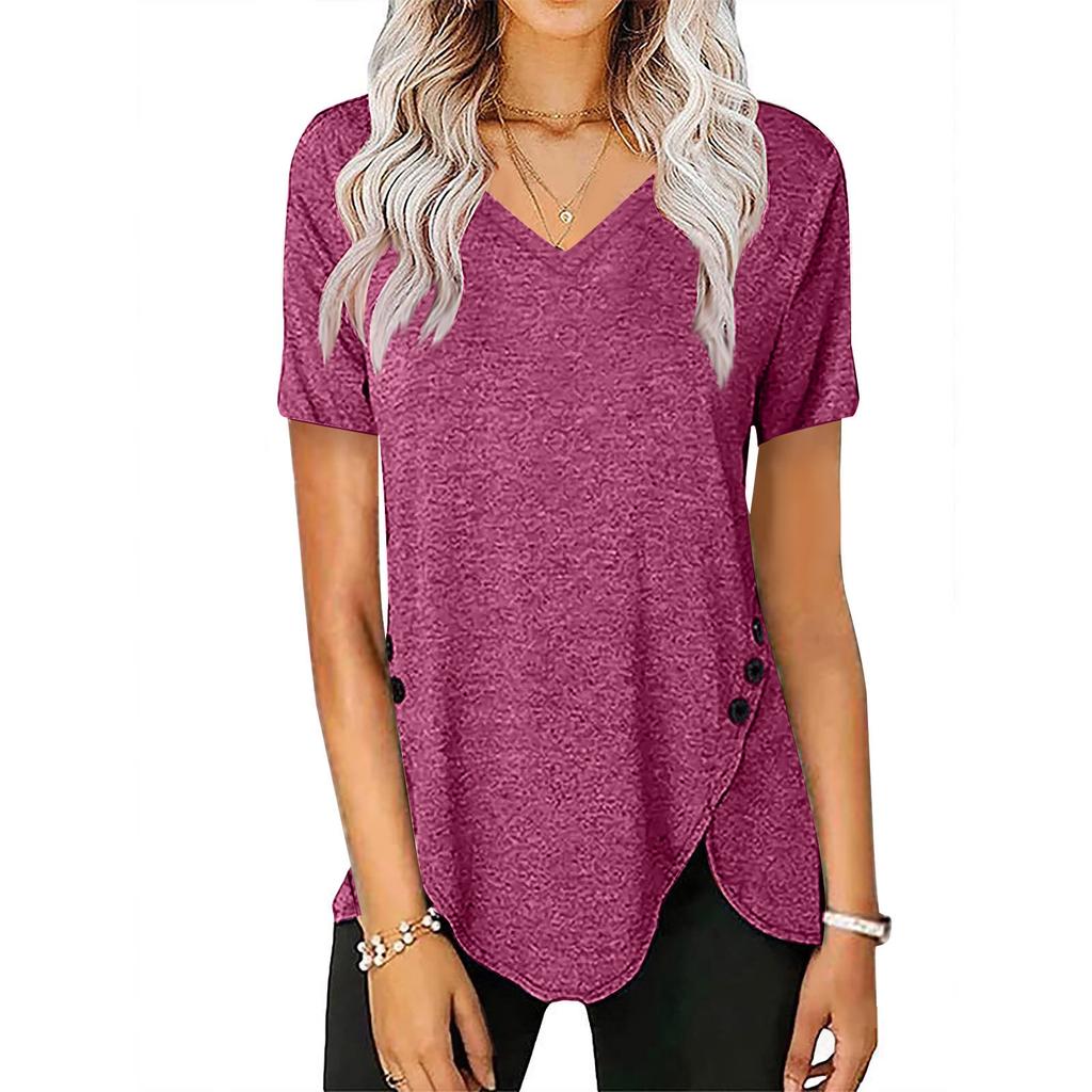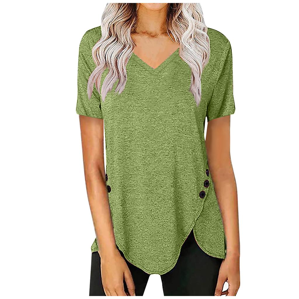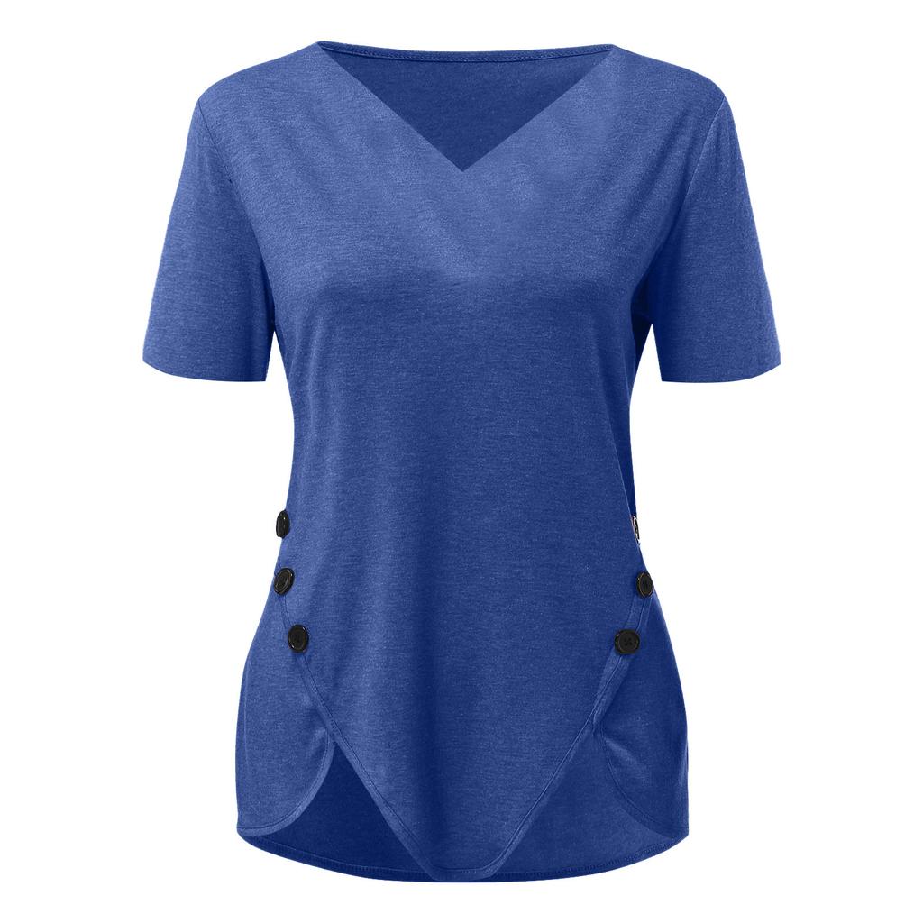 Женская повседневная однотонная свободная футболка с v-образным вырезом и коротким рукавом